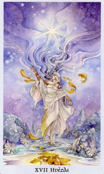 Význam: Nová naděje, víra v budoucnost, inspirace. Nalezeni vnitřního míru, ztišeni a usebrání, zachování klidu v nesnázích, harmonie, bezvýhradná oběť, sdílení a štědrost. Zmizela ostrost denního i měsíčního světa a zůstaly jen klidné neodsuzující oči hvězd. Je to míruplná chvíle, místo, kde se lze nad sebou zamyslel, dát se do pořádku a pookřát na duchu. Vzdejte se pochyb a obav a nechte se obejmout noci. Hvězdy byly vždy symbolem vedení a naděje, světlo, které vás může dovést domů. Kapr, přizpůsobivá a vitální ryba, symbolizuje silu, vytrvalost, odvahu a odhodlání. Chryzantémy, které obvykle ztělesňuji dlouhověkost, jsou také symbolem naděje.