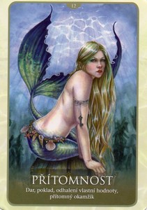 Mořské panny zpívají: Slyšely jsme, že v teplých subtropických vodách australského zálivu Moreton Bay nedávno skupina mořských biologii natočila fascinující záběry interakcí mezi delfíny a lidmi. Delfíni na tomto nádherném místě už deset let přinášejí biologům dary a ti je na oplátku podle přísné regulovaného plánu krmí. Delfíni přinášejí z moře biologům úhoře, ryby, mušle a kousky mořského „pokladu", který si odmítají vzít zpět, když jim ho biologové nabídnou. Je to chvíle mezidruhové vzájemnosti, která je dojemná a nádherná. Dochází k jasné komunikaci, sdílení a výměně energie. Když k vám přijde tato karta, ukazuje vám, jakým způsobem dochází v dané chvíli k výměně energie.
